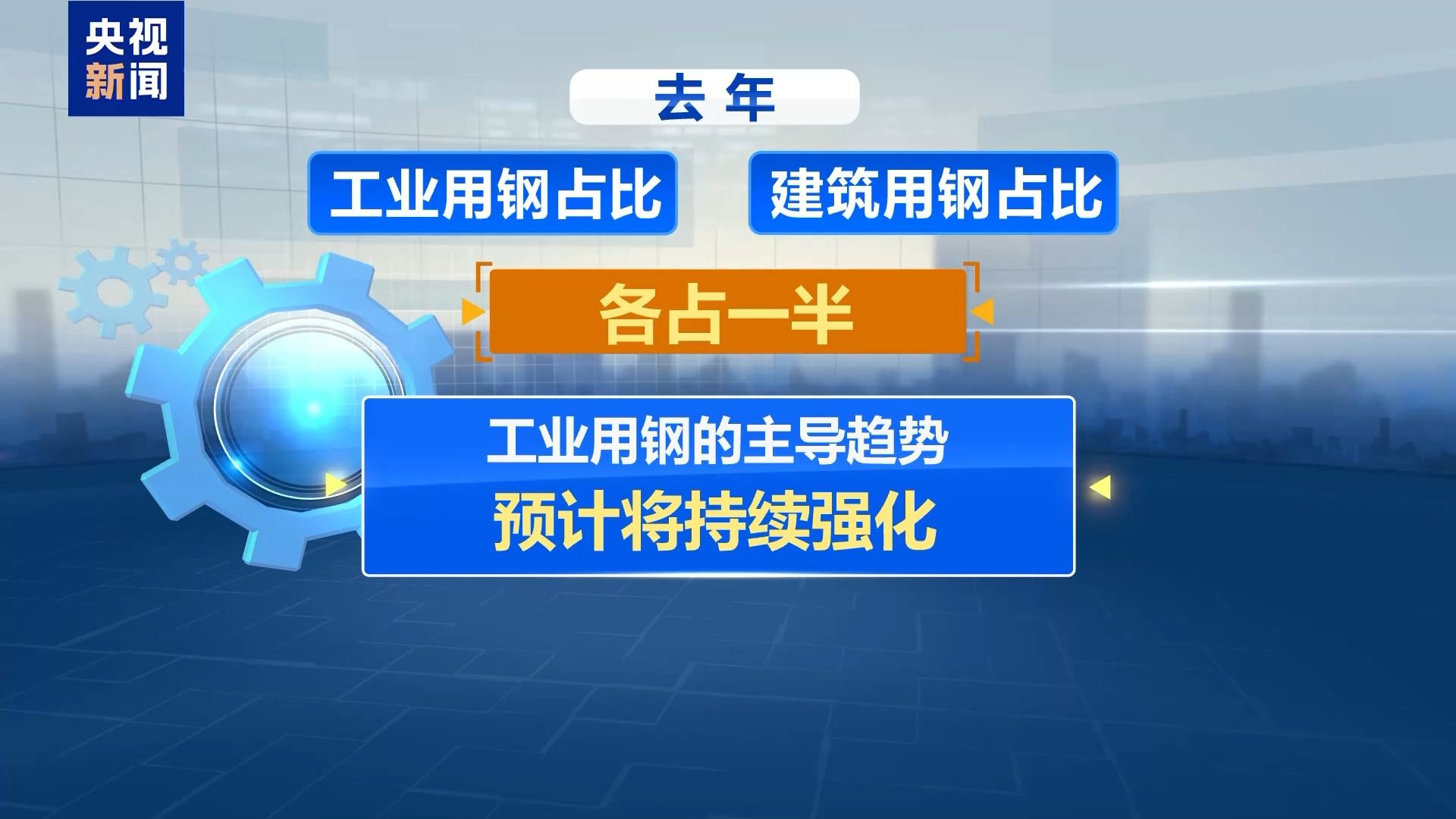 专家表示,我国钢材消费结构正经历深刻转型:工业用钢占比持续提升,建筑用钢占比则相应下降。去年两者占比已达各半,且工业用钢的主导趋势预计将持续强化。